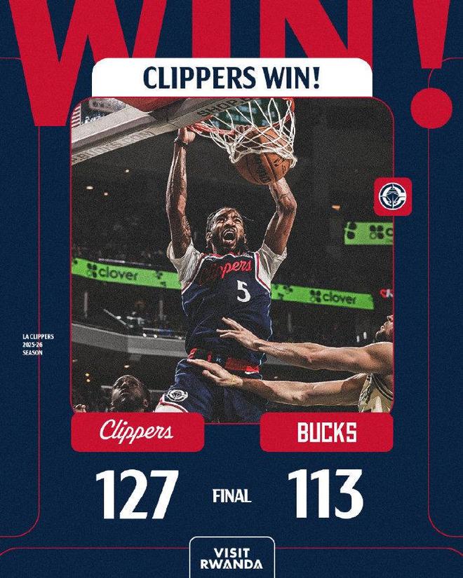 - NBA戰(zhàn)報(bào):快船127-113雄鹿取NBA5連勝,小特倫特空砍36分