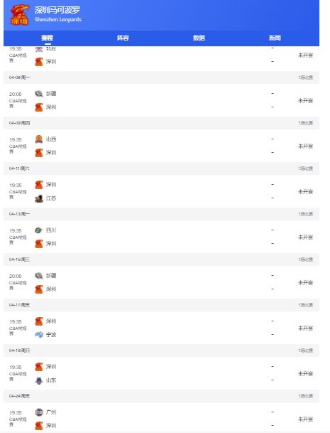 余下九輪賽程他們將先后:客寧波、主廣東、客廣廈、客浙江、主遼籃、客北控、主北京、客深圳、主上海