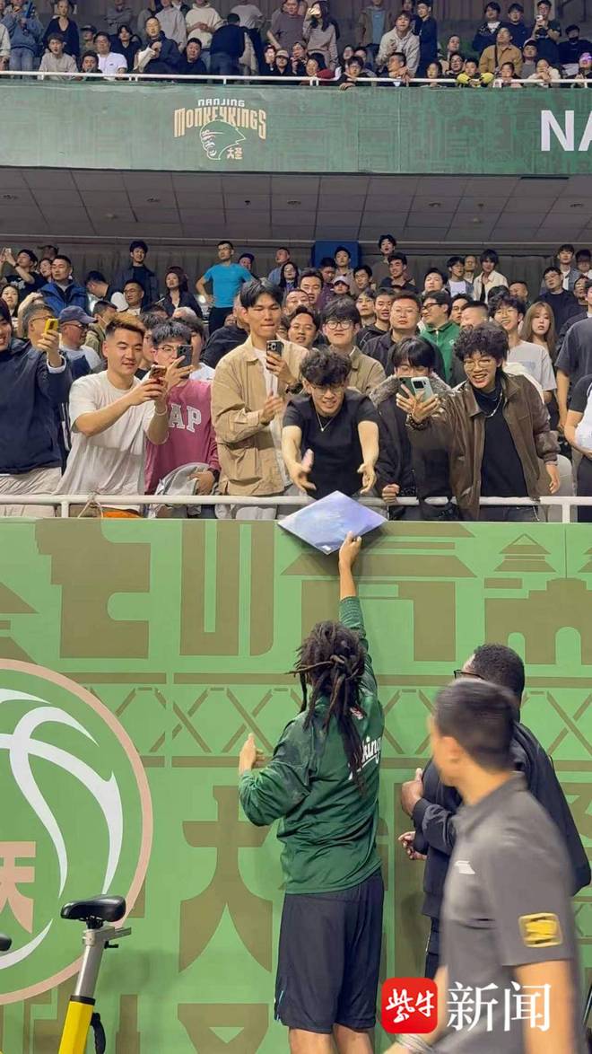 這場比賽原本既無關同曦的季后賽爭奪,賽場內也沒有CBA聯(lián)盟的頂級球星,按照往常情況,現(xiàn)場觀賽人數(shù)并不會太亮眼。可比賽當天上午本報率先報道 J. Cole 有望現(xiàn)身球場的消息后,南京五臺山體育館本場比賽的上座率出現(xiàn)肉眼可見的大幅提升。記者也在現(xiàn)場看到,現(xiàn)場觀眾里既有常年關注球隊的籃球迷,也有手持J. Cole唱片、專程趕來的歌迷,不少人更是為了一睹偶像風采,第一次走進CBA賽場觀賽。