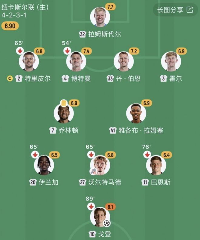 然而,高光時刻戛然而止。隨后的22場比賽中,沃爾特馬德僅打入1粒進(jìn)球(足總杯第4輪紐卡3-1維拉)。從賽季初的鋒線尖刀,到如今的黑色幽默的中場工兵射手,他的角色變化折射出埃迪·豪對他的信心正在動搖。