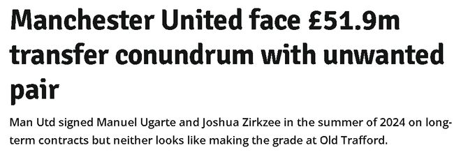 任何低于這些費用的銷售都將被記為曼聯(lián)的會計虧損,當(dāng)然,其中一部分虧損將被潛在的工資節(jié)省所抵消。齊爾克澤賣出2190萬英鎊有希望,但烏加特3000萬出售則完全不可能發(fā)生。