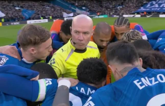 在最近對陣紐卡的比賽前,主裁判保羅-蒂爾尼出現(xiàn)在球員們賽前圍圈的中心位置
