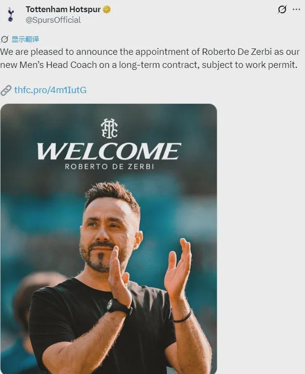 官方:熱刺宣布任命德澤爾比為新主帥!
